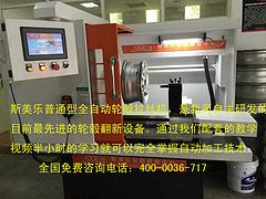 斯美乐全自动轮毂拉丝机,产品型号:SML-LG-002;产品规格:26寸(直径720mm);产品说明:福州斯美乐汽车轮毂拉丝修复机是引进德国技术,通过NC全功能电脑编程,数字化控制;全自动加工制作各种轮毂粗、细刀纹表面的一种全新先进的修复设备。设备清单: 加工各种轮毂程序一套,车削专用刀具一套,同心度检测一套,工具一套,说明书一套,教学光盘一份。